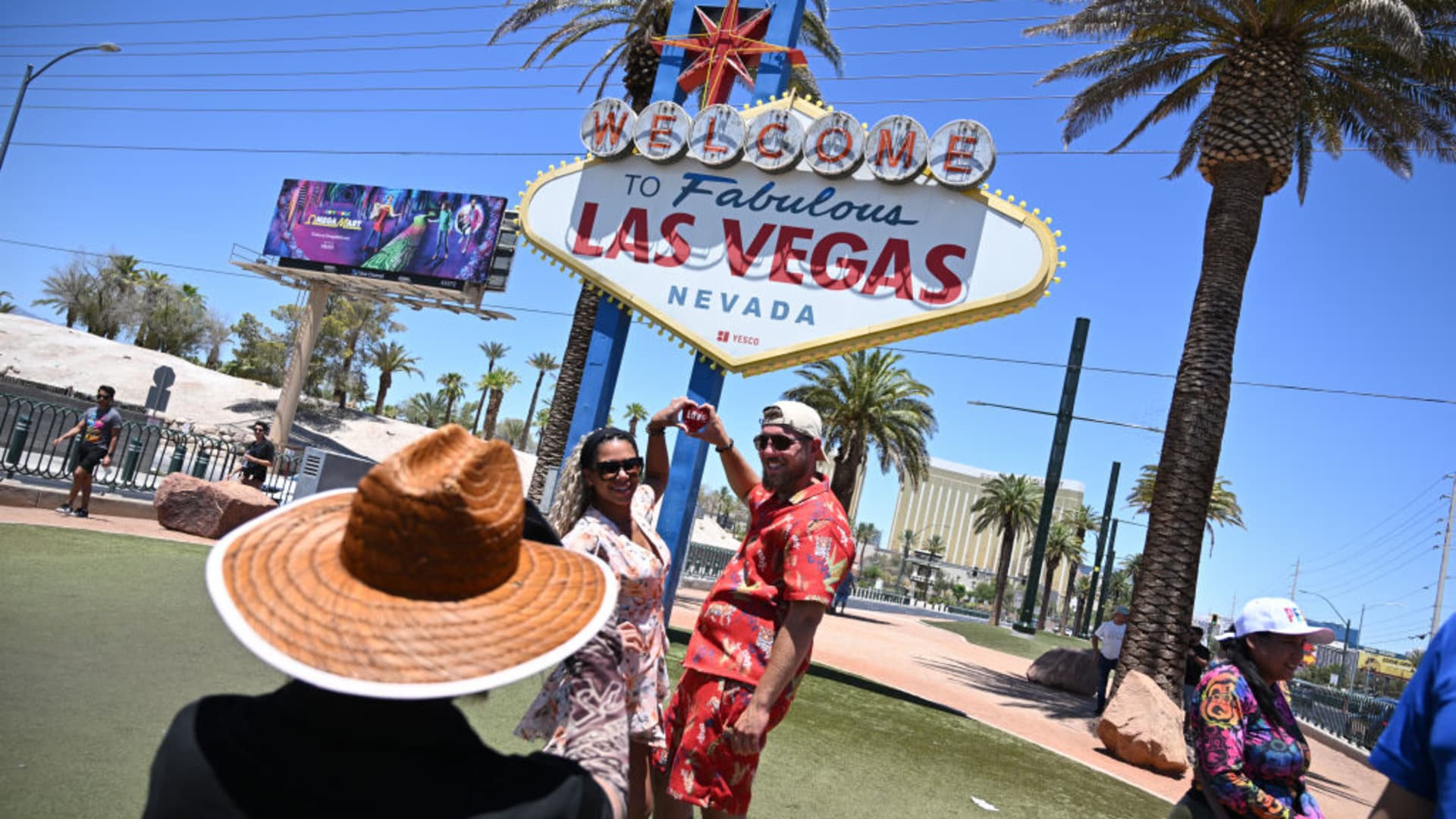 Tourists take photos near Las Vegas strip.