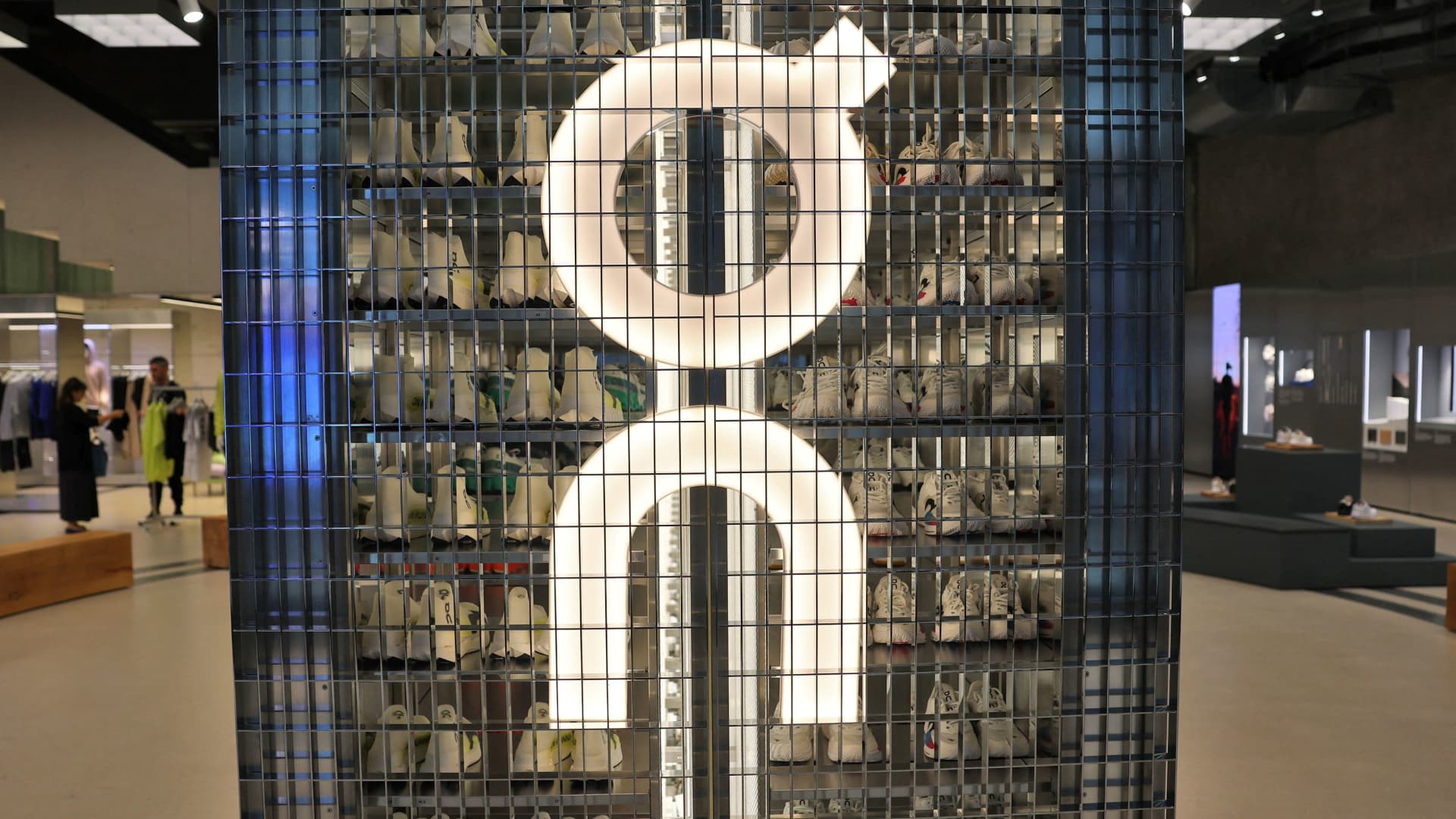 The logo of Swiss shoemaker On is displayed at a store in Zurich, Switzerland, August 28, 2025.