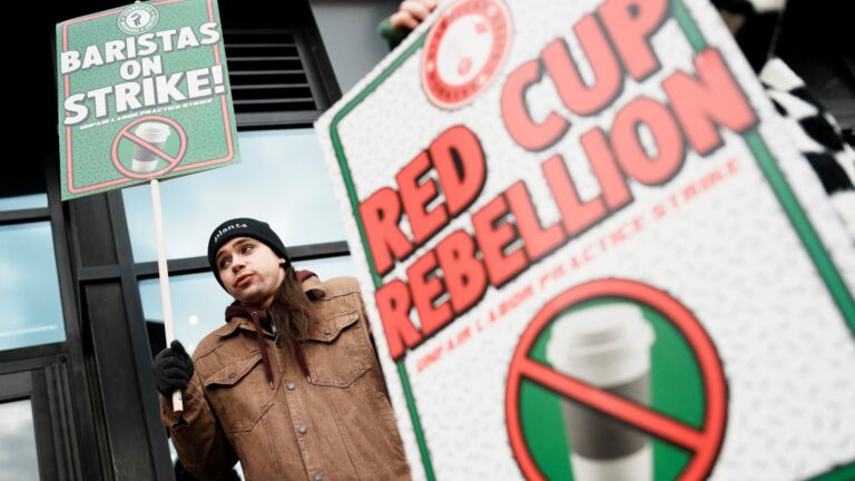 “If Starbucks continues to obstruct a fair contract and refuse to end union fighting, they will see their business grind to a halt,” Starbucks Workers United spokeswoman Michelle Eisen, a former barista who spent 15 years with the company, said in a statement. “No contract, no coffee, it’s more than a slogan: it’s a commitment to interrupt Starbucks’ operations and profits until a fair union contract and an end to unfair labor practices are achieved. Starbucks knows where we stand.”